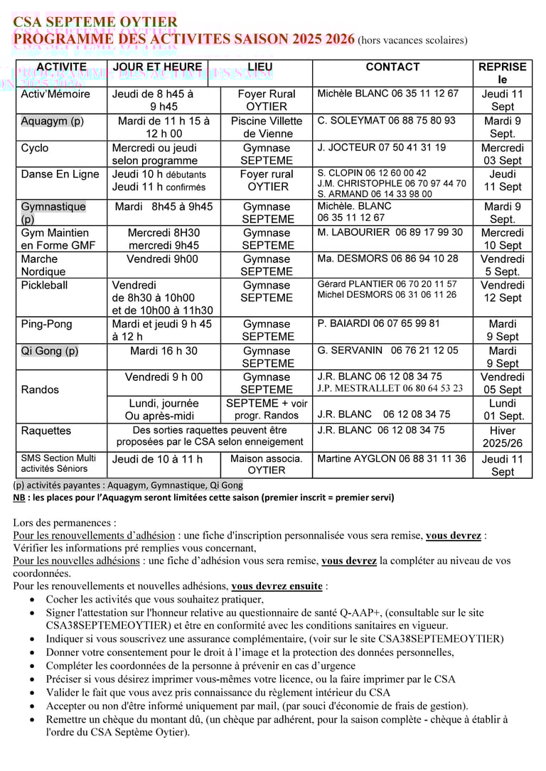 À propos du Club des Seniors Actifs de Septème / Oytier