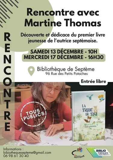 Le Club des Seniors Actifs de SEPTEME OYTIER vous informe de la sortie du premier livre jeunesse d’une de nos adhérentes septèmoise, Martine THOMAS (connue également pour ces talents de peintre),