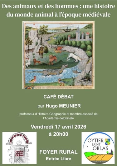 Thème : Des animaux et des hommes : une histoire du monde animal à l’époque médiévale, animé par Hugo MEUNIER Professeur d’Histoire-Géographie et membre associé de l’Académie delphinale.