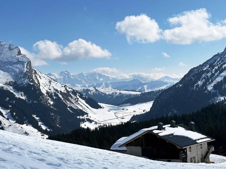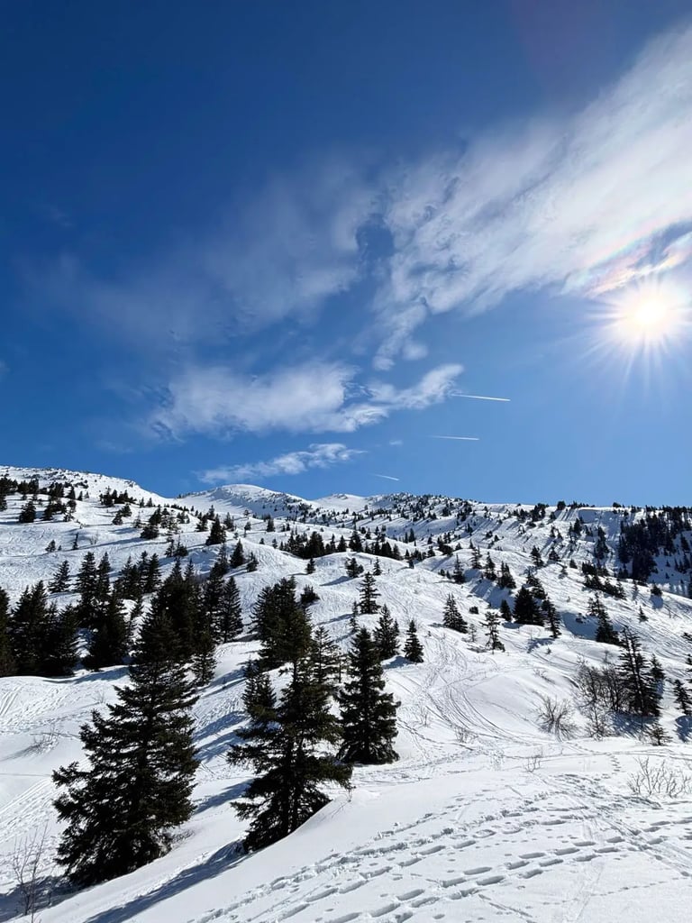 Une magnifique journée ensoleillée avec de la neige fraîchement tombée pendant le week-end.