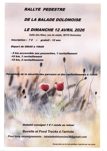 Dimanche 12 avril à partir de 8 h, rallye pédestre à DOLOMIEU, organisé par la Balade Dolomoise,